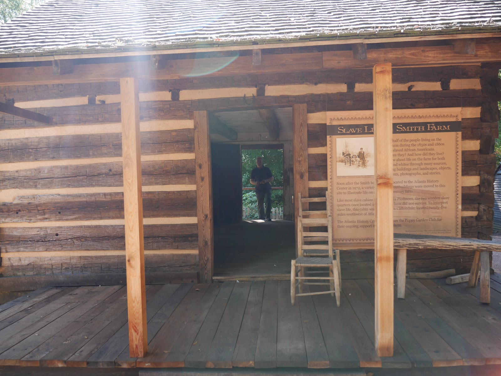 As inevitably happens with many historic buildings of this era in the south,the last building you come to is the slave cabin from the farm and the back garden. The cabin is fairly stark (as one would expect to be authentic to slave quarters on a farm) and mostly filled with large posters depicting information about living and working conditions of the slaves, who would have mostly been the ones that would have been working and tending to the kitchen, meat house and farm that we saw on the property.